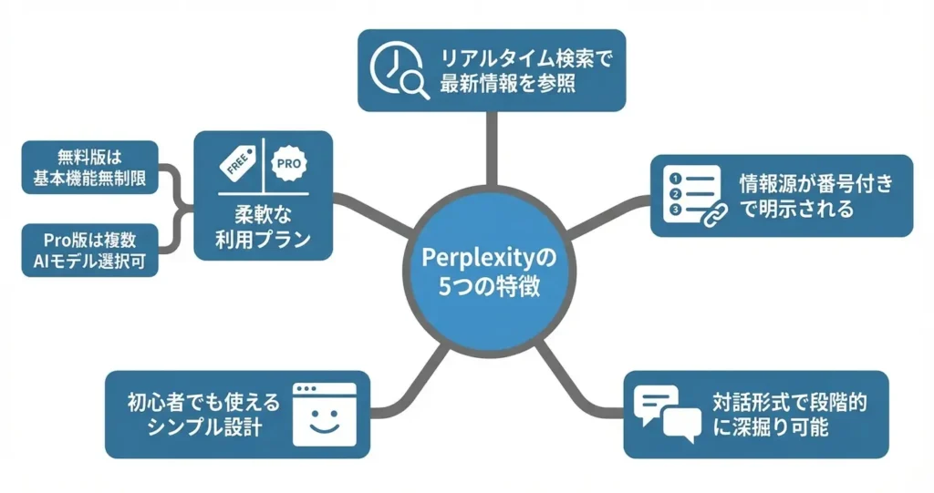 これらの特徴を理解することで、Perplexityがどのような場面で力を発揮するツールなのかが見えてきます。