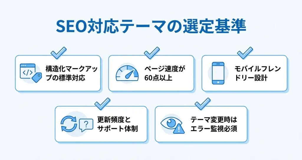 無料テーマの多くは、表示速度やモバイル対応といった技術的SEO要件を満たしています。